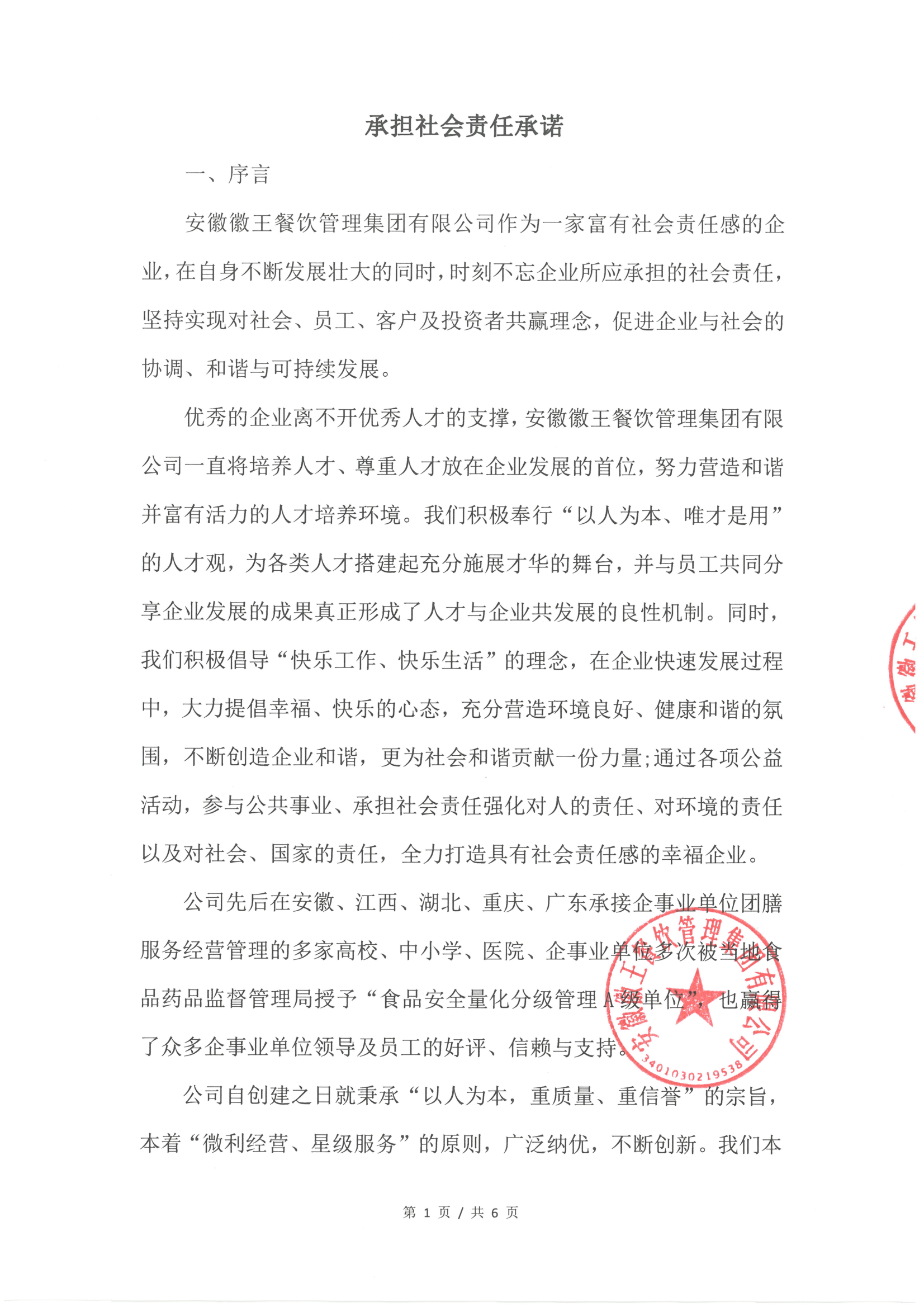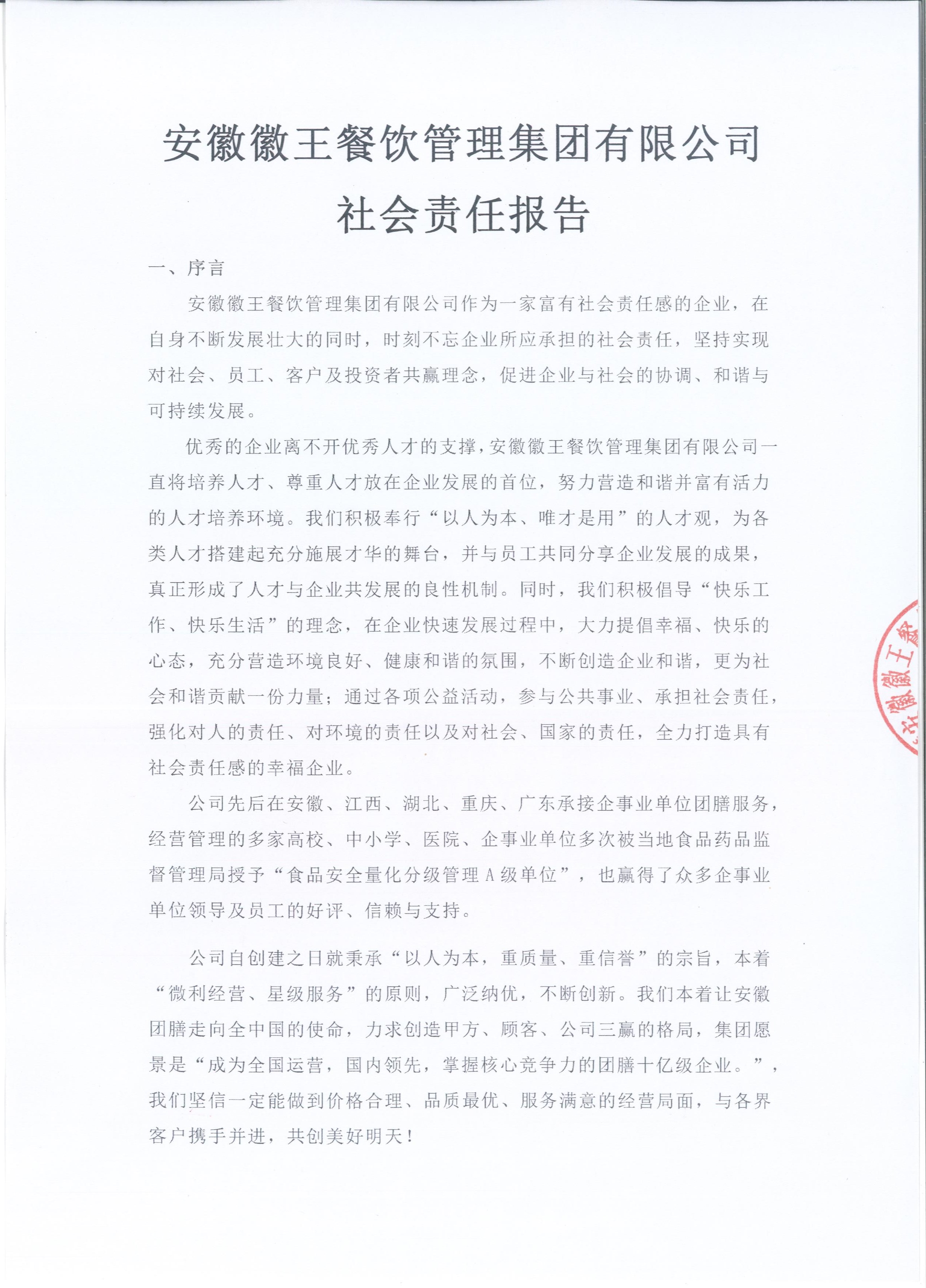 安徽徽王餐飲管理集團(tuán)有限責(zé)任公司社會(huì)責(zé)任報(bào)告